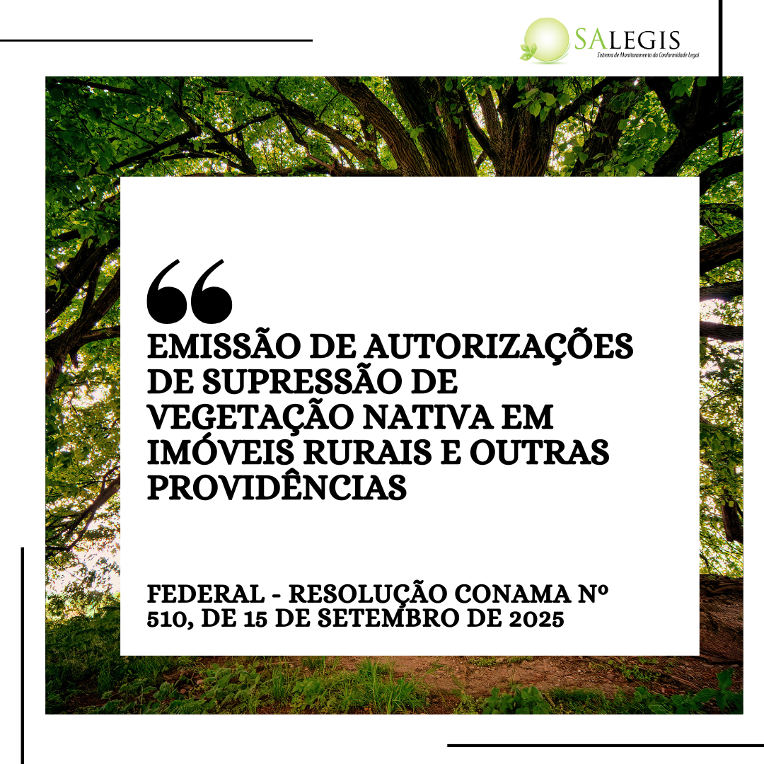 Data: 17/09/2025. Foi publicada no D.O.U, em 16/09/2025, a Resolução CONAMA nº 510, de 15 de setembro de 2025, que dispõe sobre critérios técnicos, condições de validade, transparência, integração e…
